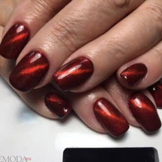 Красный маникюр с эффектом кошачьего глаза: модный образ для модных ногтей.